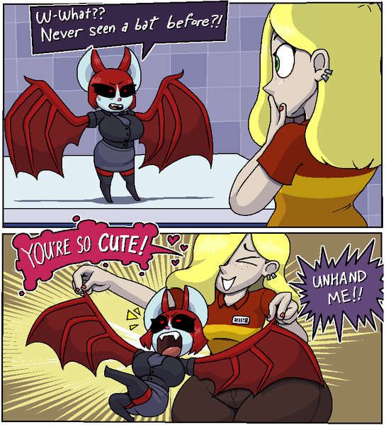 A vampire working for the undead mafia, she is currently the "assistant manager" for the Burger Kurger restaurant, though really this just means making sure laundering money through the restaurant isn't blatantly obvious. She's got a bit of a drinking problem when it comes to blood (which functions much like alcohol does on a human) her favorite is O positive even though it's really expensive. She wears sunscreen specialized for the undead to walk around during daylight (it smells like coconuts!)