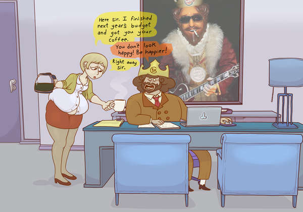 A single mother with a hefty midsection (no matter what she does it doesn't seem to go away). She works as a secretary for... some big evil corporation. A hopeless romantic who loves ice cream and romcoms.