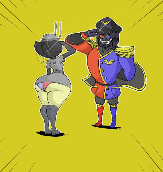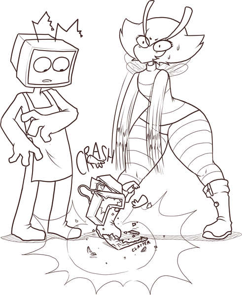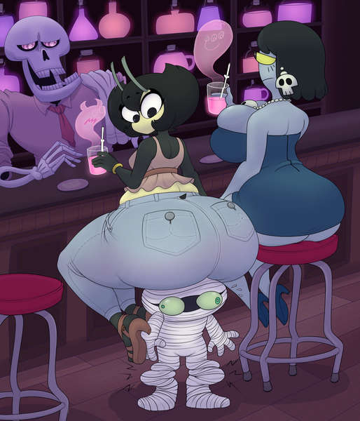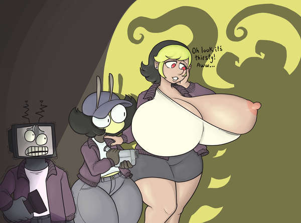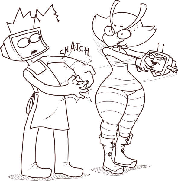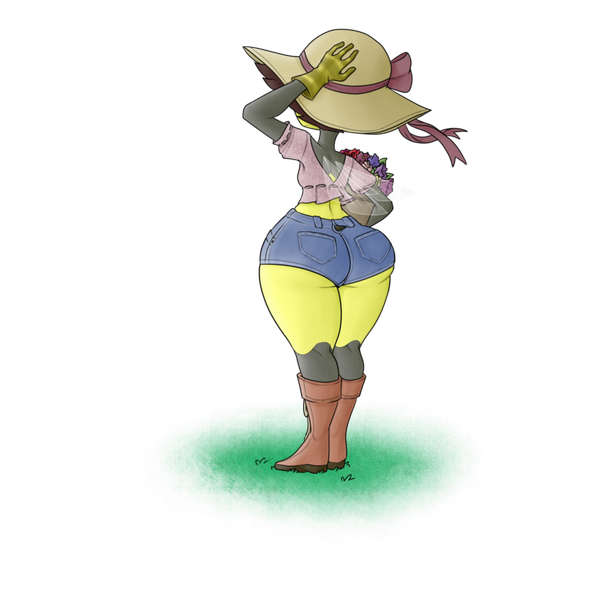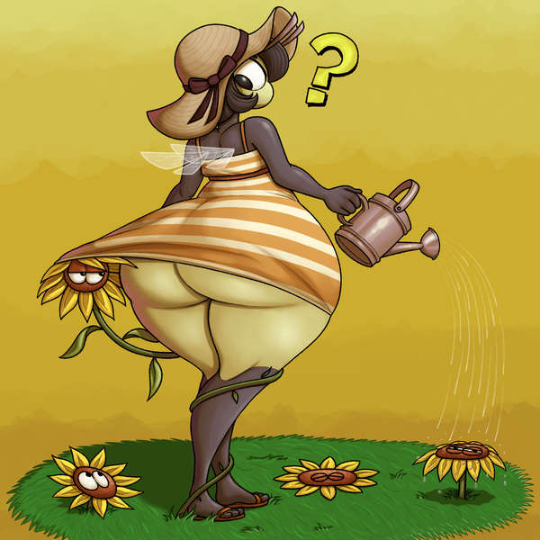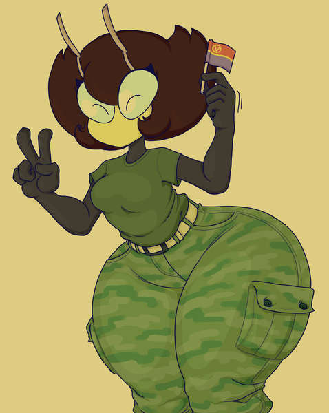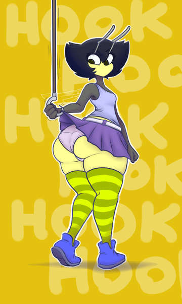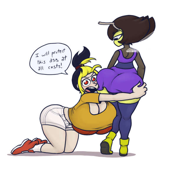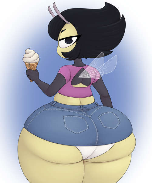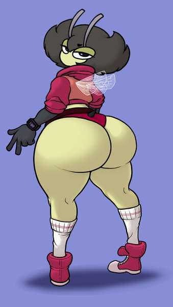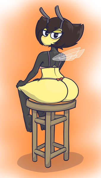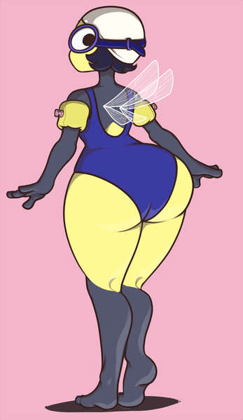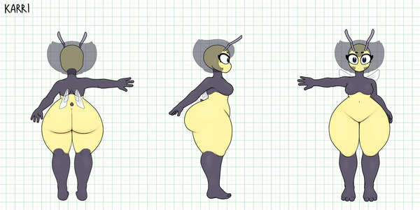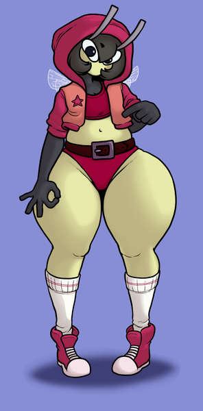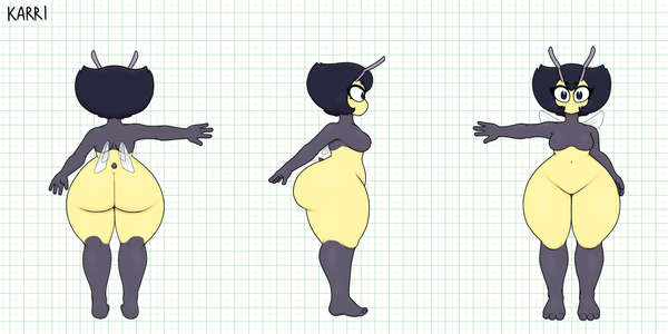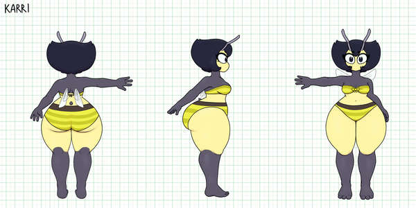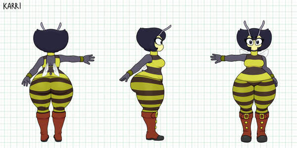Alien bee girl from a Space Hive that orbits the earth. Has a naturally large behind and wings and a stinger that mysteriously disappear when i forget to draw them. Has an attitude.